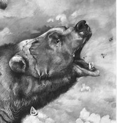 My ekphrastic poem “Screaming Bear” was published this month in Auk Contraire‘s NO/WHERE issue, which you can read online here. You really should take a moment, too, to view the full image of Adonna Khare’s stunning & incredibly moving piece, Screaming Bear, an homage to her father during his illness and suffering from a brain tumor, along with the rest of her artwork here. I had the opportunity to view her work at the Boise Art Museum.